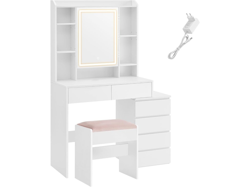 Toaletní stolek se stoličkou 6 zásuvek LED osvětlení bílá