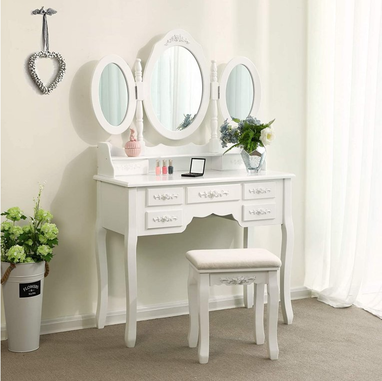 Toaletní stolek se stoličkou 6 zásuvek LED osvětlení bílá