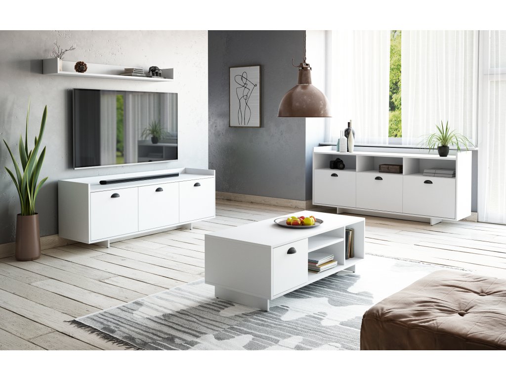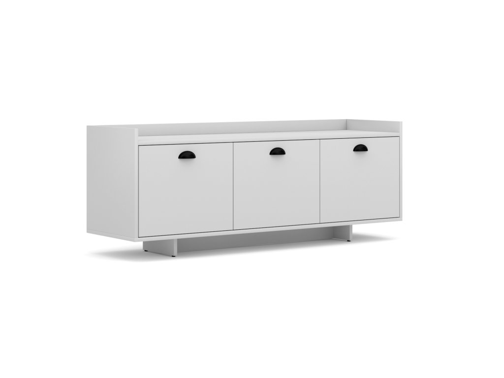 Jedinečným prvkem této TV skříňky jsou stylové úchyty ve tvaru mušle a směrem nahoru vystupující tělo. Ta kromě zvýšení estetické hodnoty nábytku zlepšuje i jeho funkčnost, takže je možné na něj bezpečně umístit například velkou sbírku desek nebo knih, aniž byste se museli bát, že spadnou dolu.