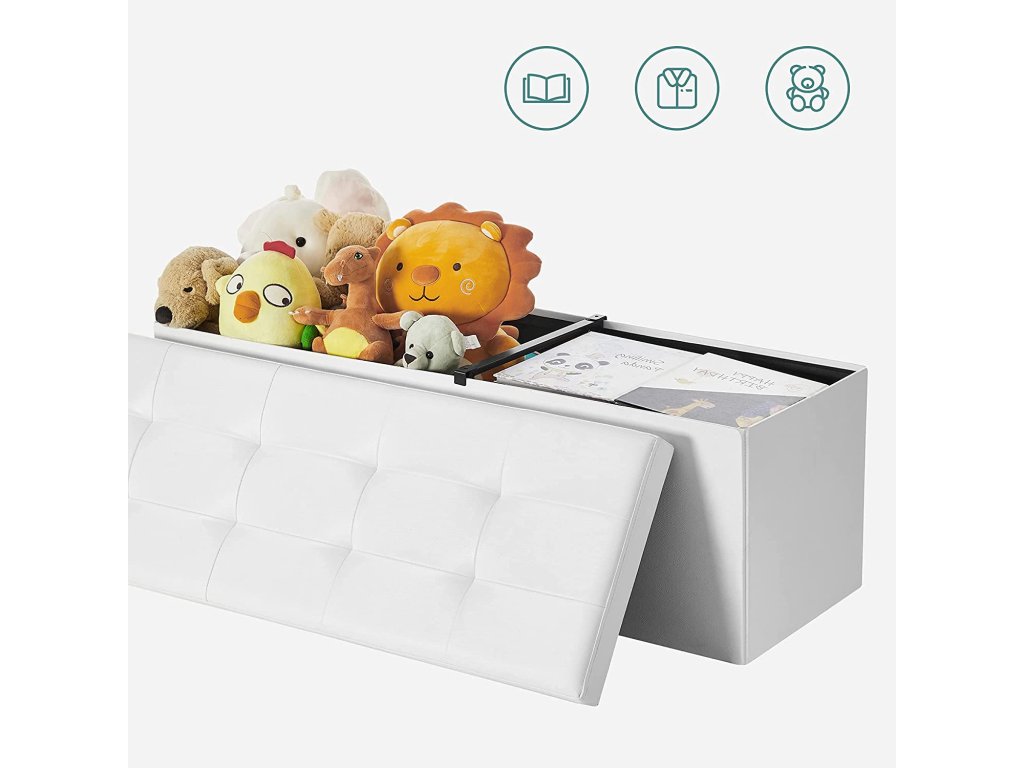 Sedací lavice s vnitřním prostorem o objemu 120 l nabízí dostatek místa pro uložení polštářů, přikrývek, oblečení, časopisů atd. Rozlučte se s nepořádkem