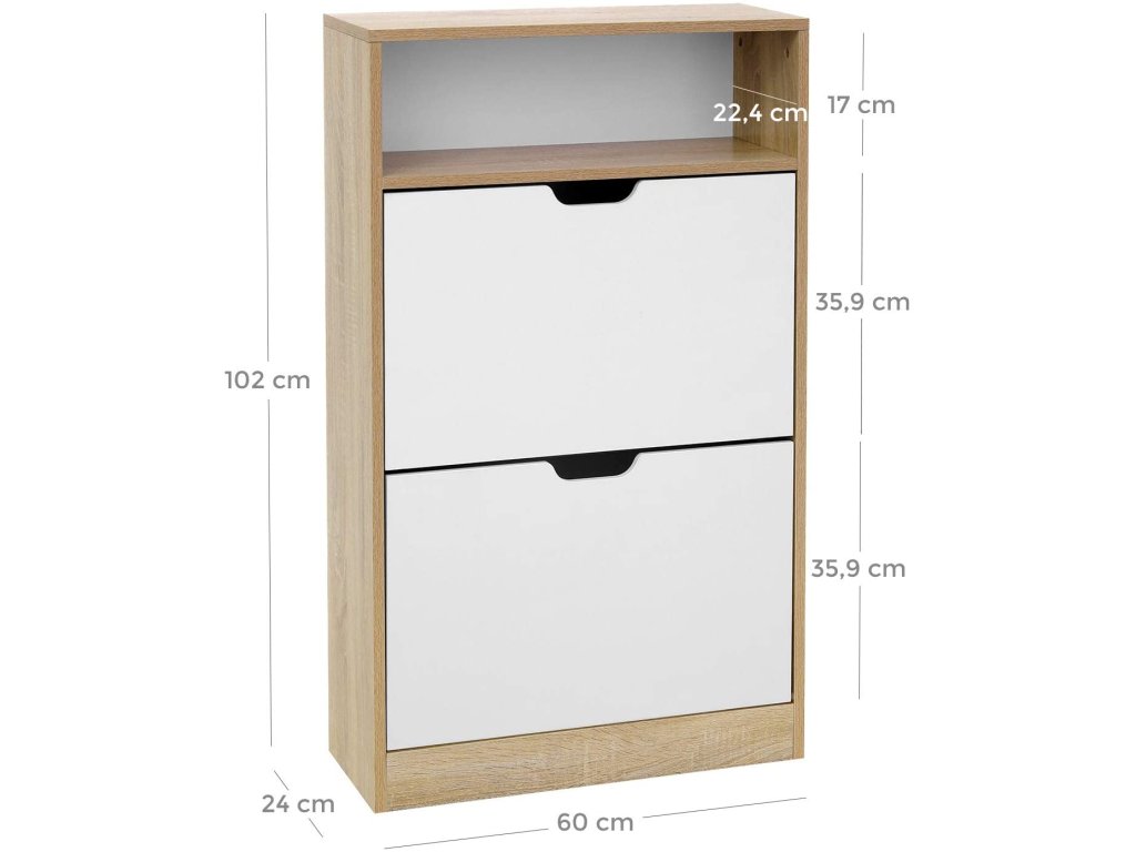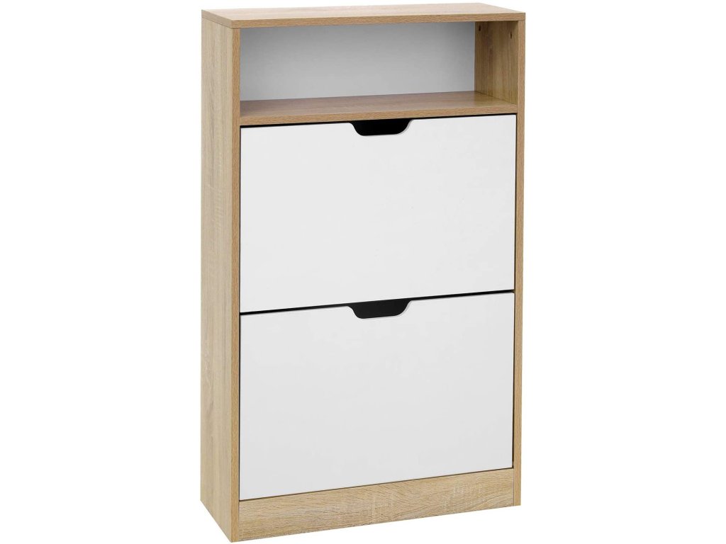 Uzavřený botník 2 přihrádky a police dub bílá 60 x 102 cm