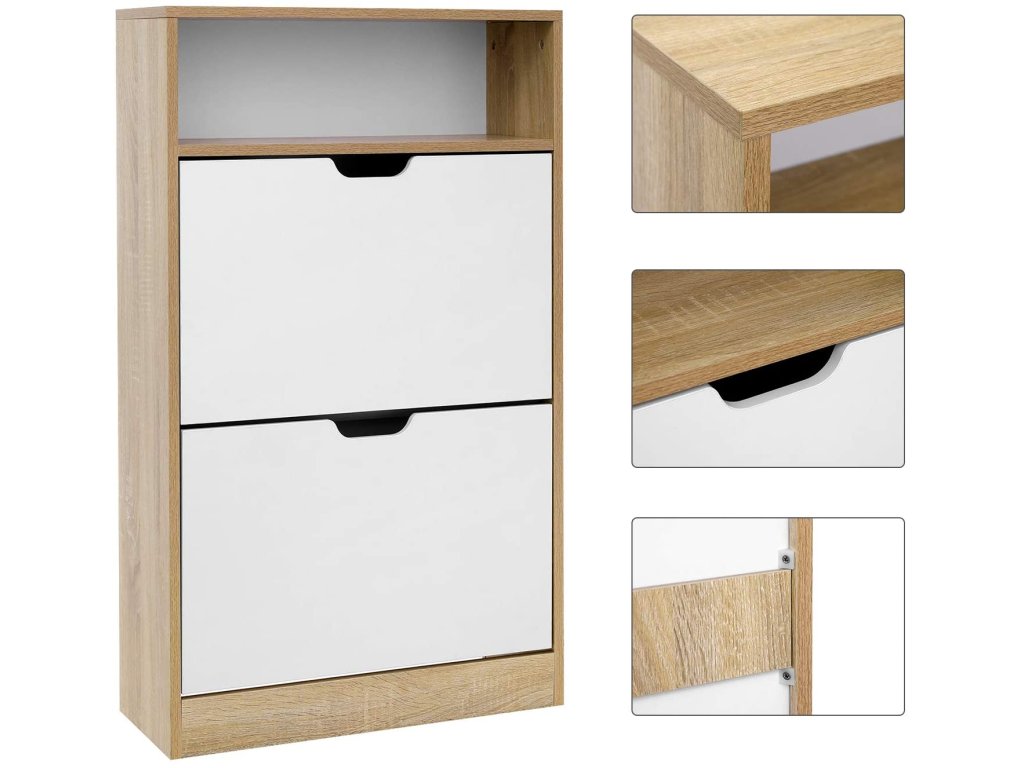 Botník vyrobený z kvalitní dřevotřísky s melaminovou dýhou, se snadno čistí a je odolný proti poškrábání. Zároveň chrání všechny vaše boty před prachem.