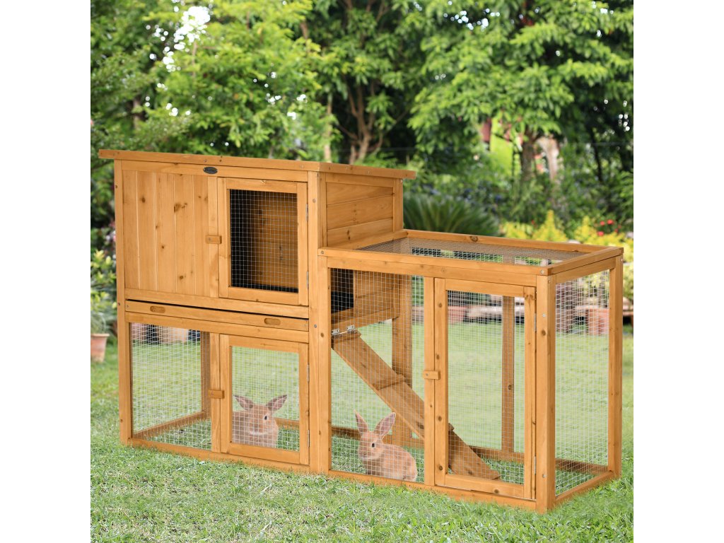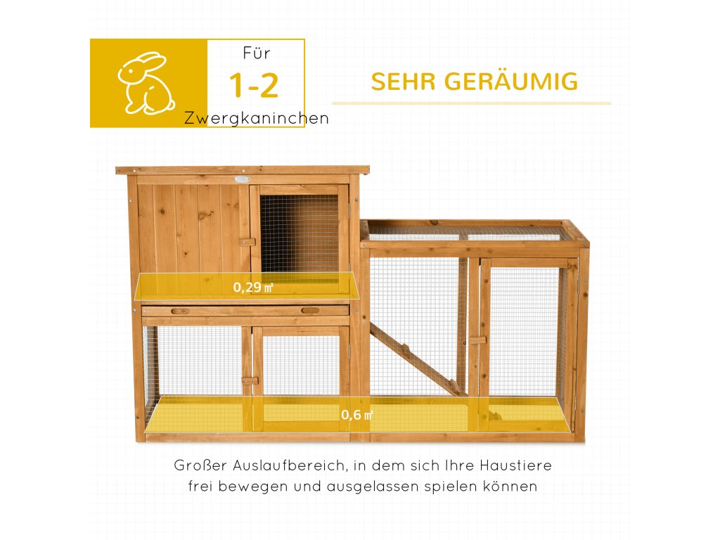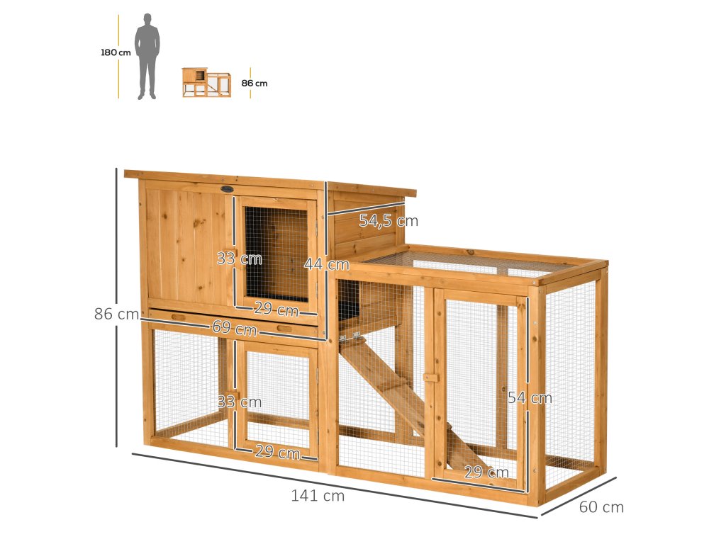 Domeček pro malá zvířata od společnosti PawHut je ideální pro králíky, morčata a další zvířata podobné velikosti. Tato luxusní dřevěná králíkárna je ideální kombinací bezpečí a volnosti a nabízí veškeré pohodlí domova s dostatkem prostoru pro běhání a hraní. Uzamykatelná dvířka a výsuvné přihrádky usnadňují čištění a další běžné úkony. Pořiďte svému chlupatému kamarádovi pohodlný životní prostor od PawHut!