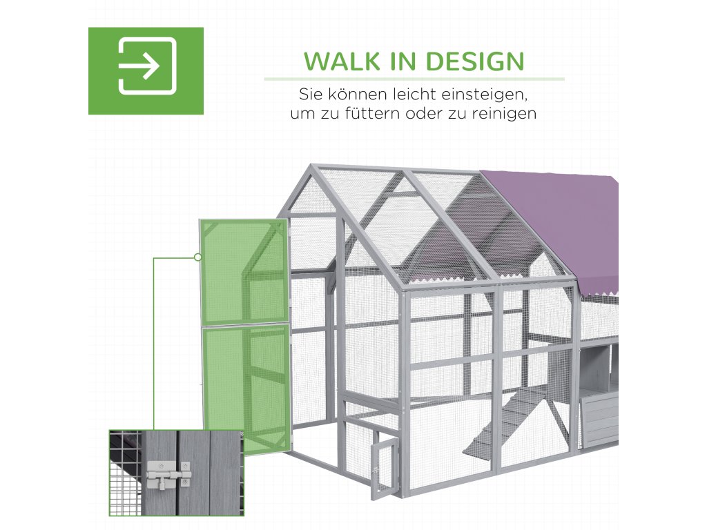 ✔ Díky vysoké konstrukci výběhu mohou majitelé snadno vstupovat a vystupovat z prostoru pro krmení.