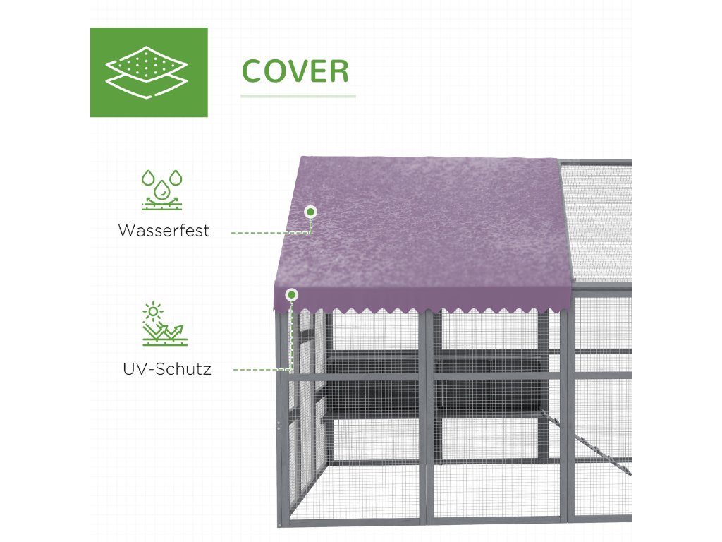 ✔ Stinná střecha chránící zvířata před deštěm a UV zářením, udržuje je v chladu, suchu a pohodlí