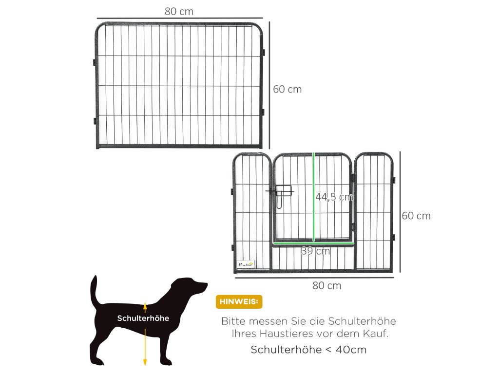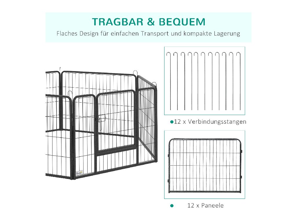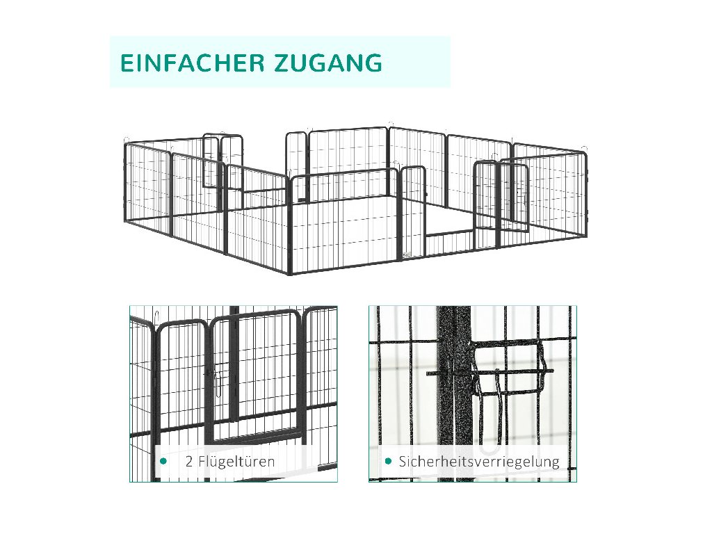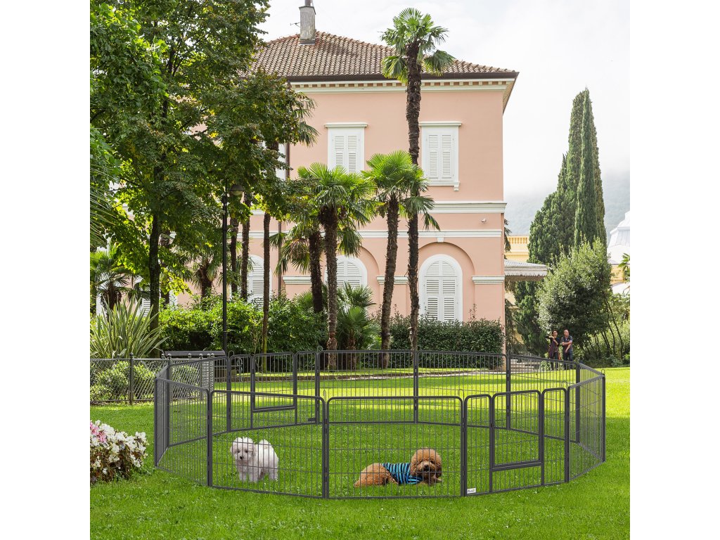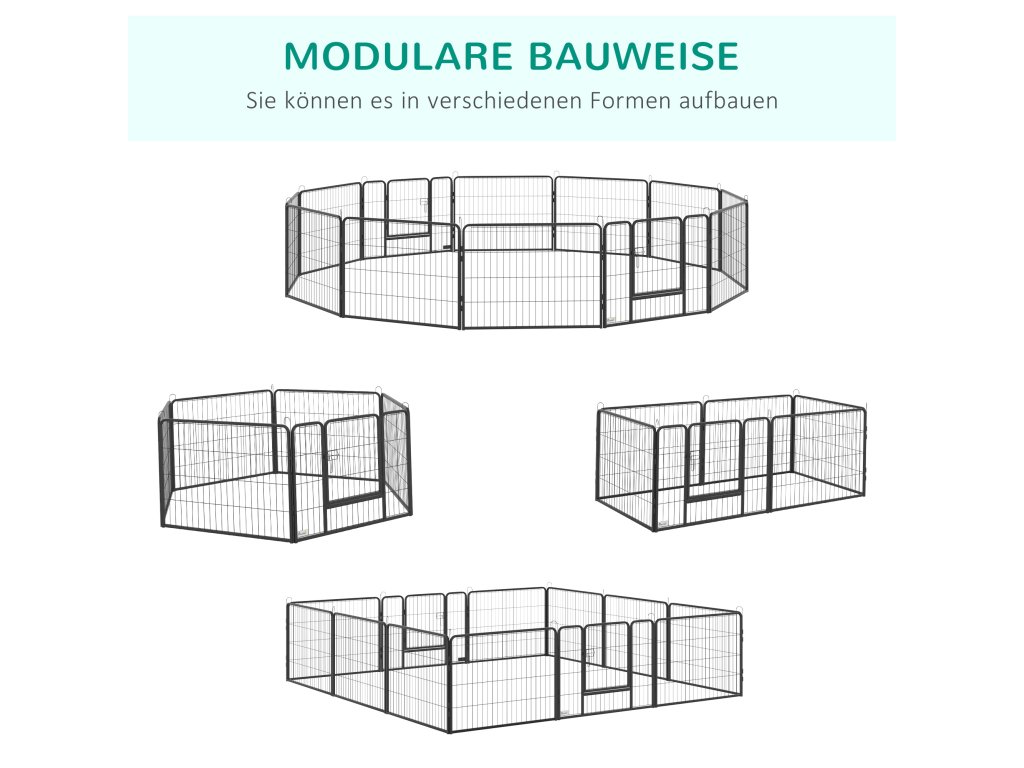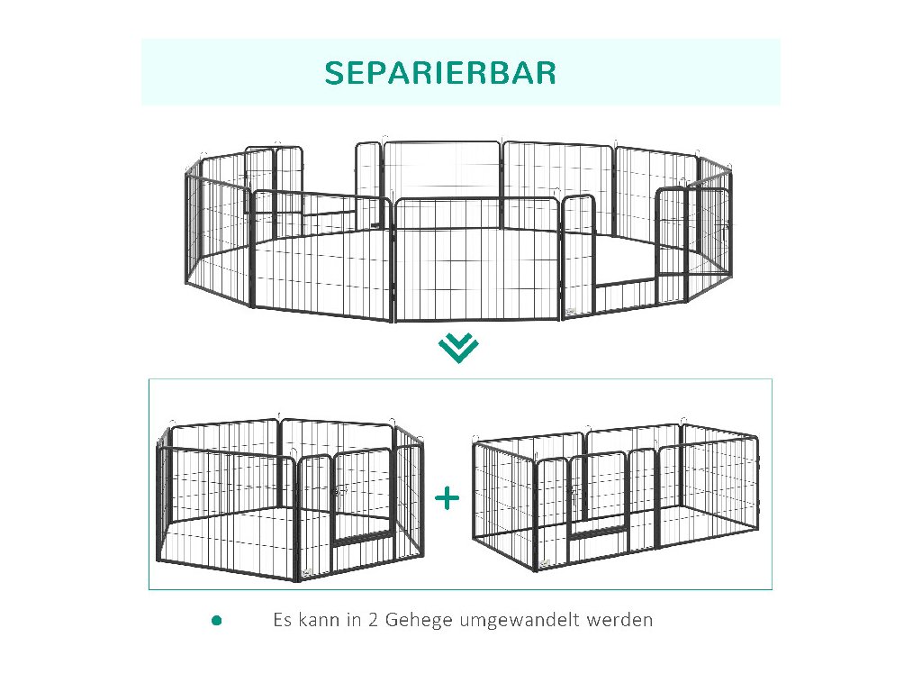 Objevte všestranný výběh pro psy PawHut! Skládá se z 12 přizpůsobitelných panelů, které lze flexibilně navrhnout podle vašich potřeb. Ať už jako prostorný výběh, nebo rozdělený na dvě části, umožňuje oddělit různá domácí zvířata. Dvoje přístupové dveře a bezpečný uzamykací systém zajišťují maximální bezpečnost.