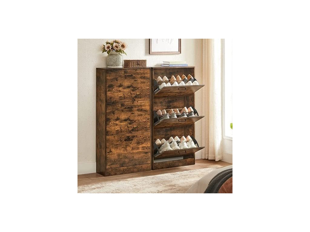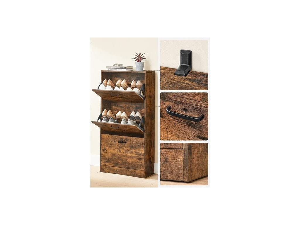 Hnědý třípatrový botník nabízí uzavřený úložný prostor pro Vaši obuv.