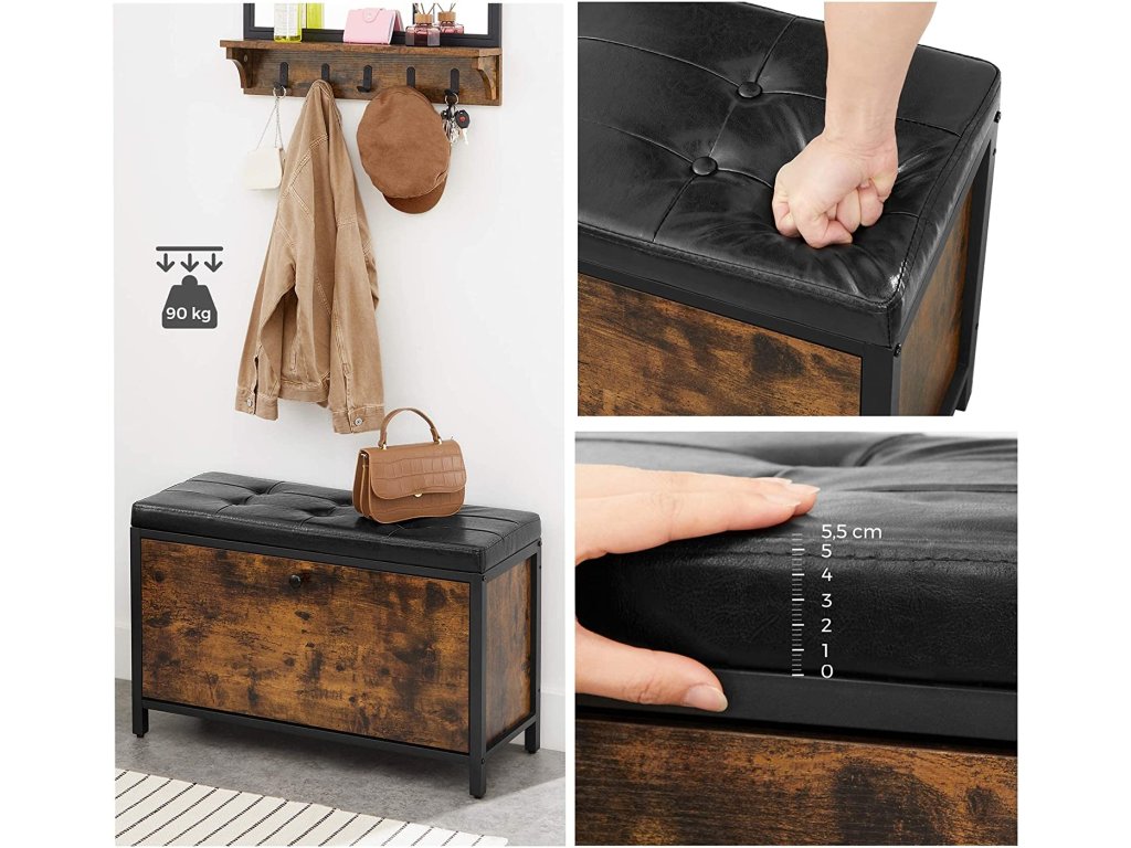 Botník je vhodným doplňkem do předsíně, kde se můžete posadit i uklidit boty do výklopného regálu.