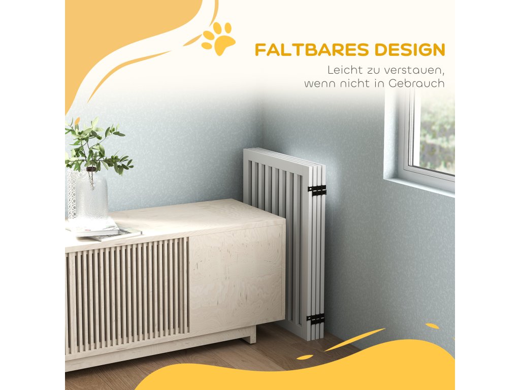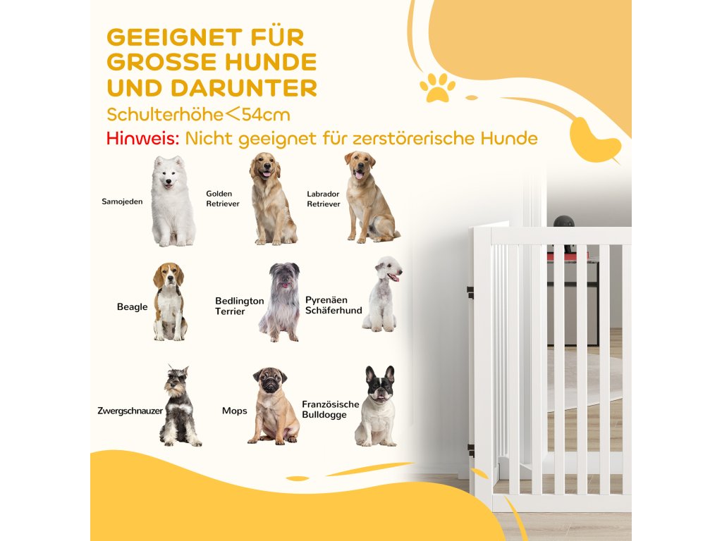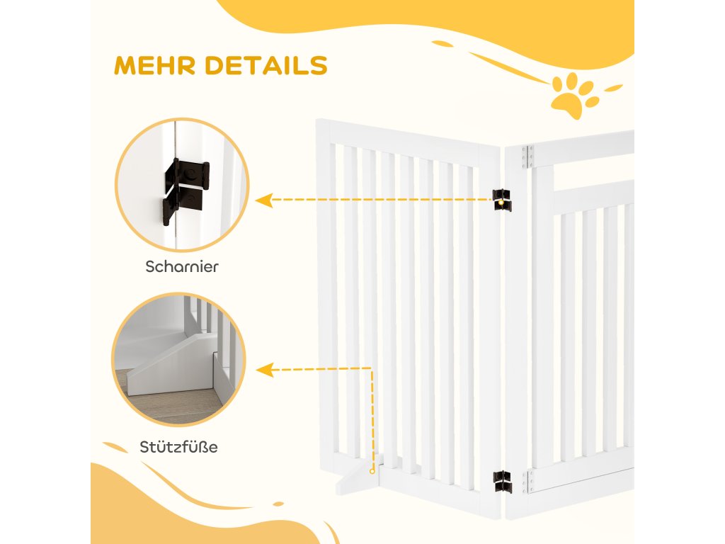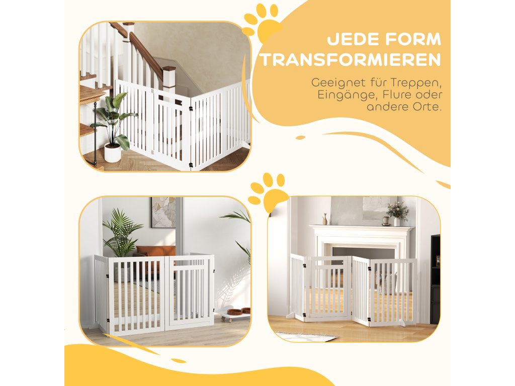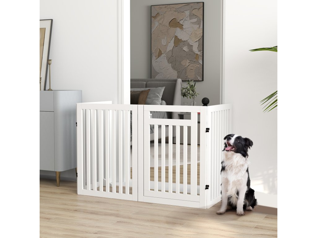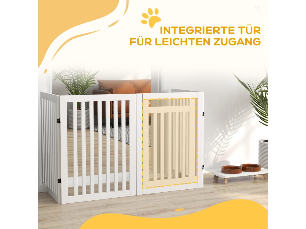 Dřevěná ohrádka s dvířky od společnosti PawHut představuje bezpečný a účinný způsob ochrany vašich domácích mazlíčků a zároveň dekorativní prvek pro váš domov. Jeho čtyřpanelová konstrukce umožňuje skládání branky do různých tvarů. Jeden panel slouží jako dvířka a umožňuje vašemu domácímu mazlíčkovi snadno vstupovat a vystupovat. Bránu lze složit, což usnadňuje její skladování ve stísněných prostorách, aniž by zabírala příliš mnoho místa.