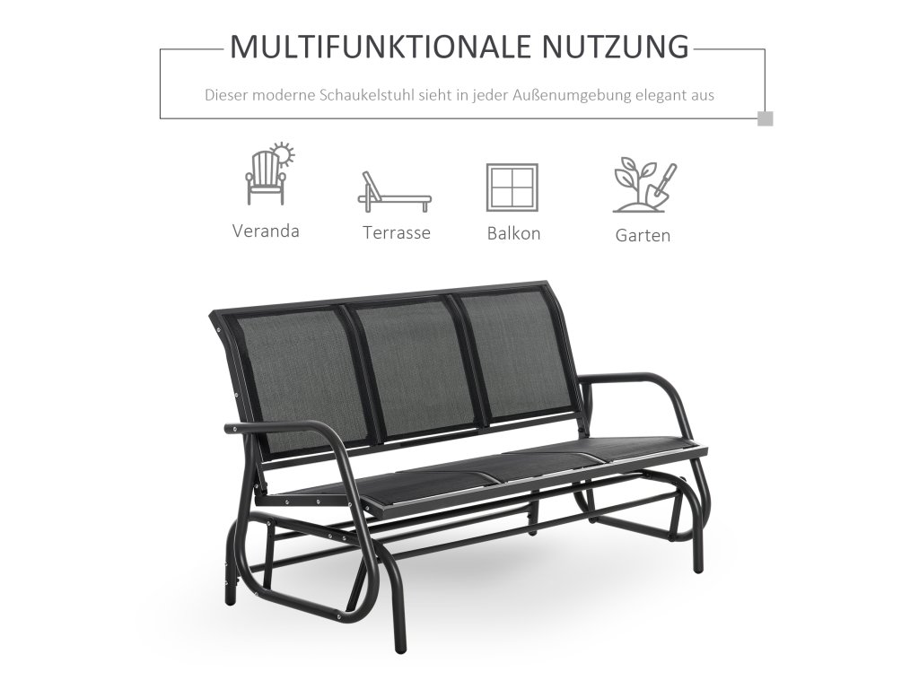 Naše vysoce kvalitní balkonové lehátko v klasickém stylu od společnosti Outsunny se skvěle hodí na vaši zahradu nebo verandu. Funkce houpání zajišťuje relaxační den na zahradě a robustní kovová konstrukce nabízí dlouhou životnost. Potah z jemné síťoviny na sedáku a opěradle je prodyšný a vybízí k pohodlnému sezení. Jednoduše se posaďte na toto skvělé zahradní houpací křeslo a nechte svou mysl bloudit.