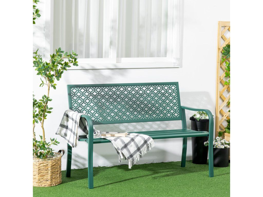 Zahradní lavice HOMCOM nosnost 280 kg 127 x 63 x 83 cm tmavě zelená