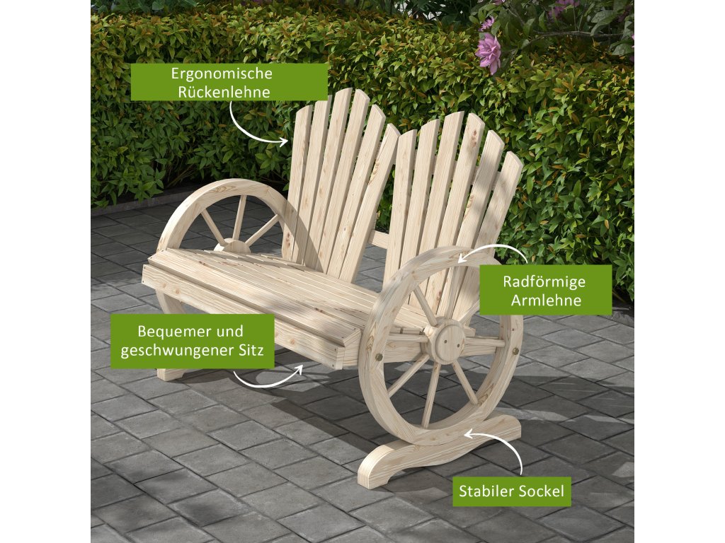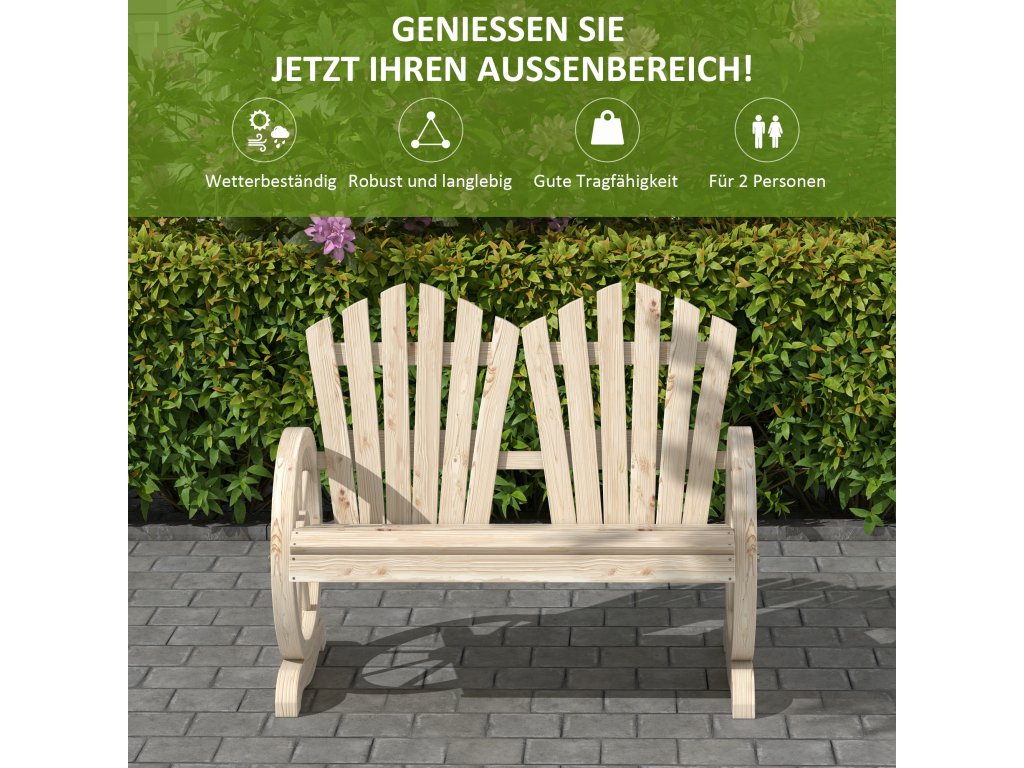 Toto dřevěné křeslo je vyrobeno z přírodního jedlového dřeva a má dobře navržené područky ve tvaru koleček. Lze jej použít v jakémkoli relaxačním prostoru, například na zahradě, dvoře, terase, u bazénů apod. Široké sedáky a robustní konstrukce nabízejí místo pro nejméně dvě osoby. Pohodlné opěradlo je ideální pro relaxaci, odpočinek, spánek i společenské setkání.