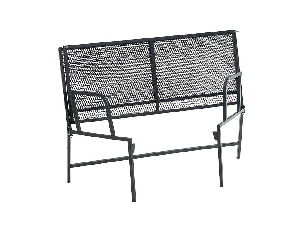 Sestava kovového zahradního nábytku pro čtyři osoby ALFA obsahující pohodlnou pohovku pro dva, dvě polstrovaná křesílka a konferenční stolek.