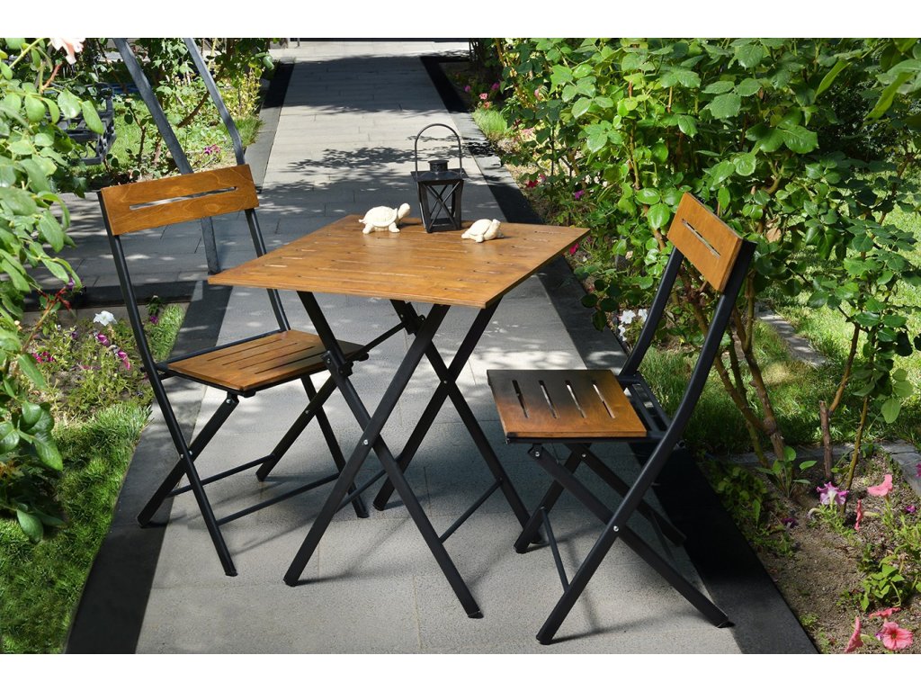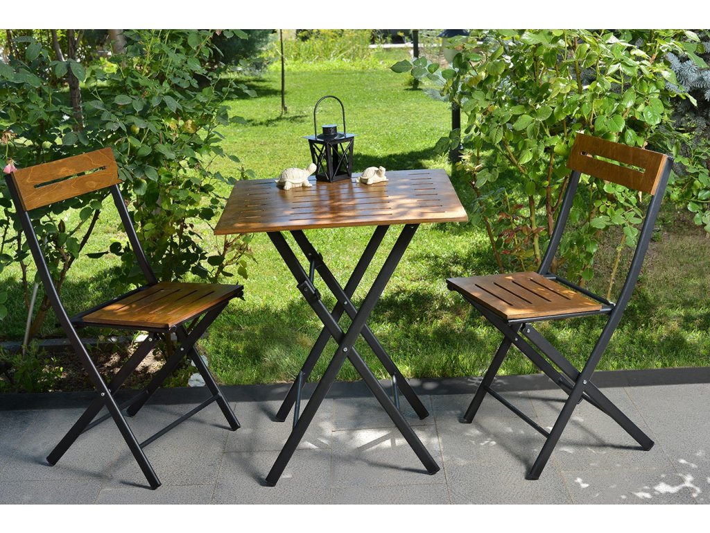Ořechovo-černý set nábytku BISTRO - dvě židle a stolek