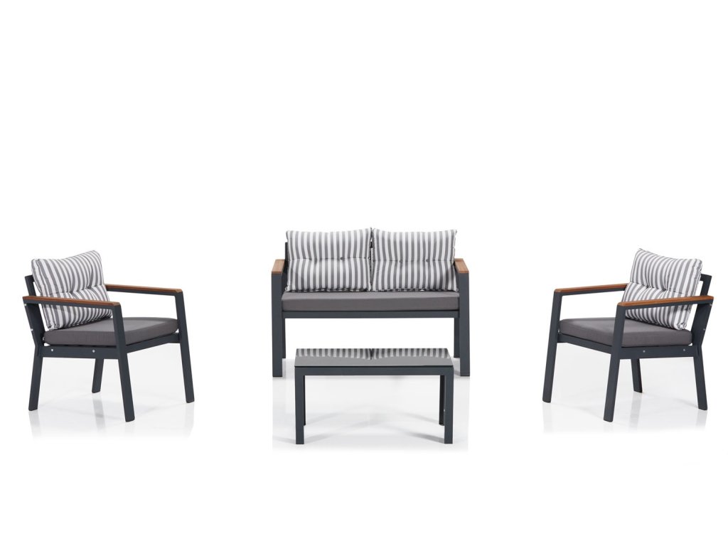 Zahradní sestava nábytku DEFNE Vám nabízí komfortní venkovní posezení na pohodlném polstrováním.