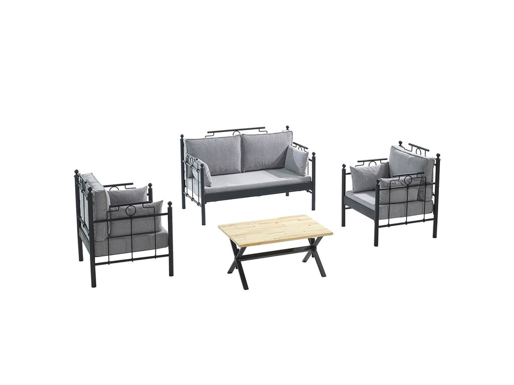 Zahradní nábytek set HATKUS 2+1+1 černá kouřová