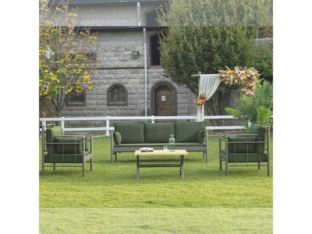 Zahradní nábytek set HATKUS 3+1+1 hnědá zelená