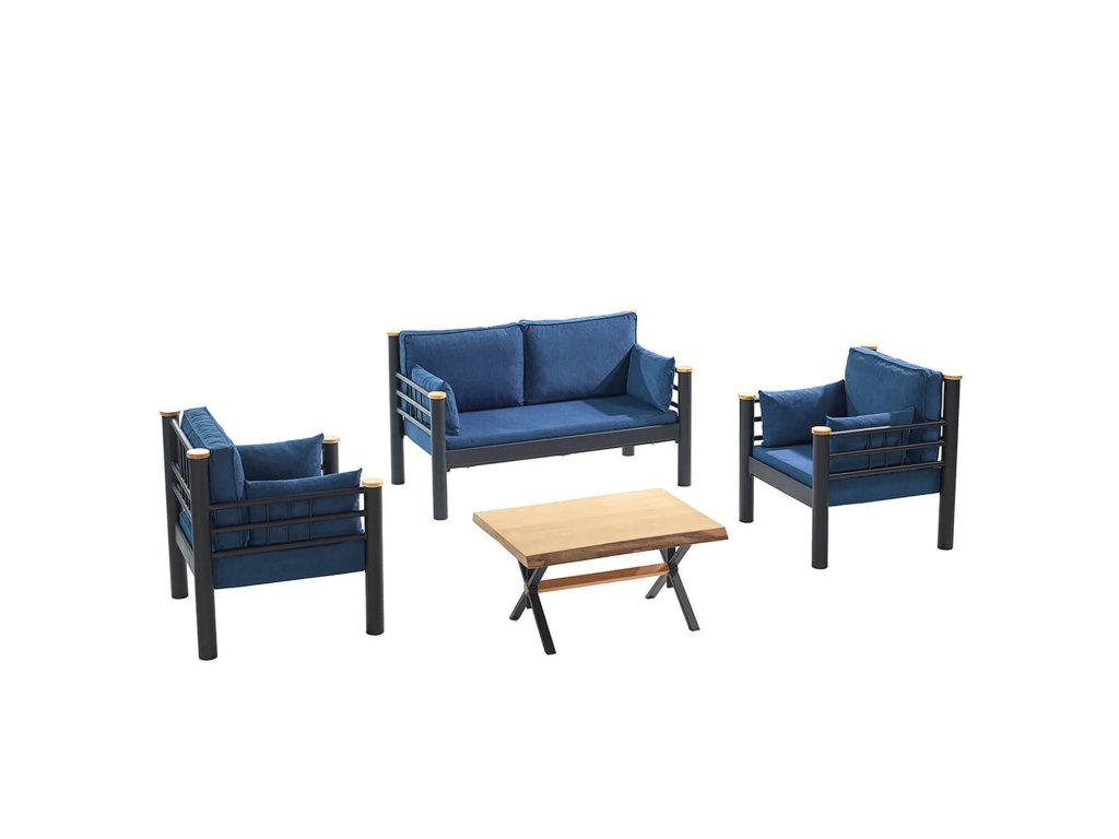 Zahradní nábytek set KAPPIS 2+1+1 černá tmavě modrá