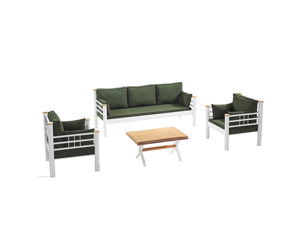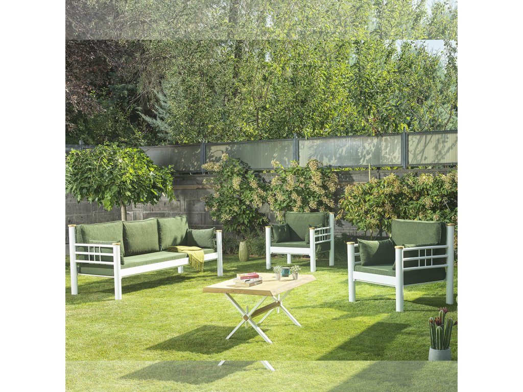 Zahradní nábytek set KAPPIS 3+1+1 bílá zelená