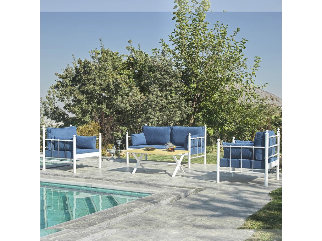 Zahradní nábytek set LALAS 2+1+1 bílá tmavě modrá