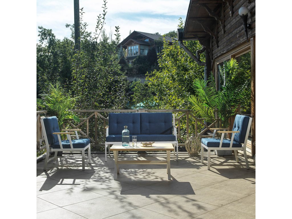 Zahradní nábytek set LOTUS 2+1+1 bílá tmavě modrá