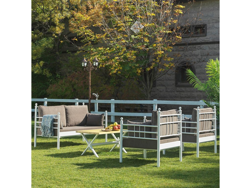 Pevný a stabilní kovový rám ošetřený práškovým lakováním, lepené lamely pro extra pohodlí a bohatě polstrované polštáře, dodávají zahradnímu setu vlastnosti luxusního nábytku na zahradu.