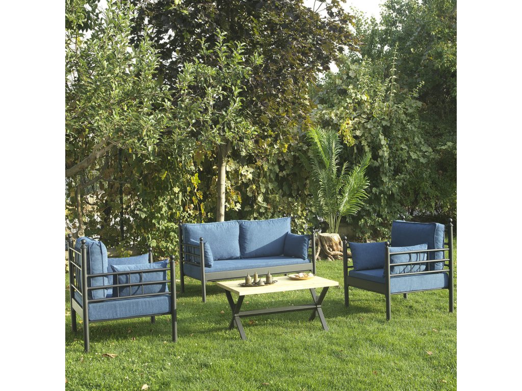 Pevný a stabilní kovový rám ošetřený práškovým lakováním, lepené lamely pro extra pohodlí a bohatě polstrované polštáře, dodávají zahradnímu setu vlastnosti luxusního nábytku na zahradu.