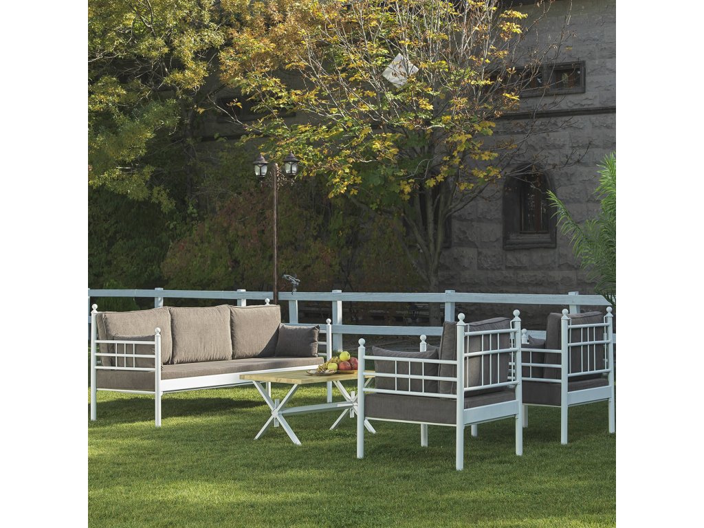 Pevný a stabilní kovový rám ošetřený práškovým lakováním, lepené lamely pro extra pohodlí a bohatě polstrované polštáře, dodávají zahradnímu setu vlastnosti luxusního nábytku na zahradu.