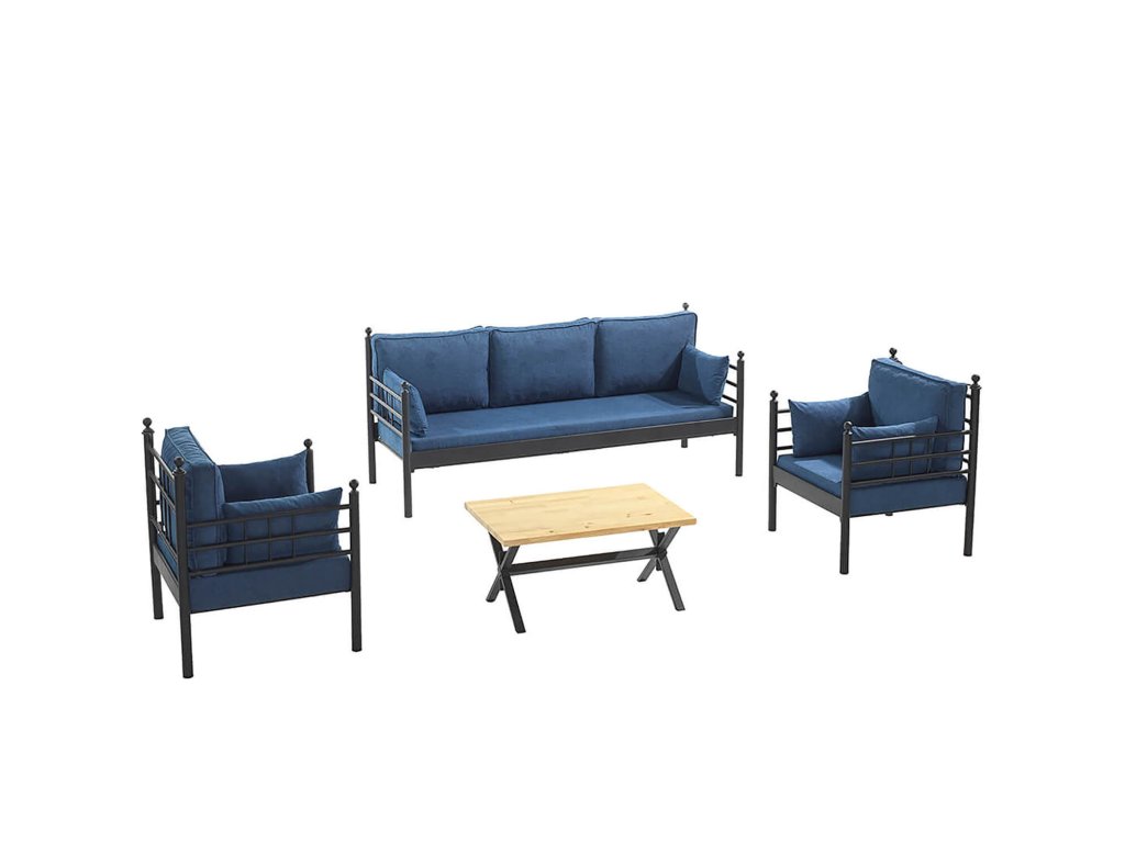 Zahradní nábytek set MANYAS 3+1+1 černá tmavě modrá