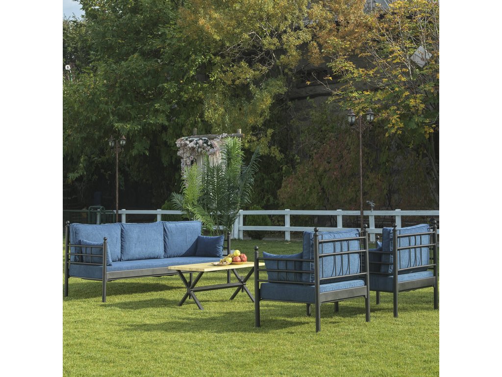 Pevný a stabilní kovový rám ošetřený práškovým lakováním, lepené lamely pro extra pohodlí a bohatě polstrované polštáře, dodávají zahradnímu setu vlastnosti luxusního nábytku na zahradu.