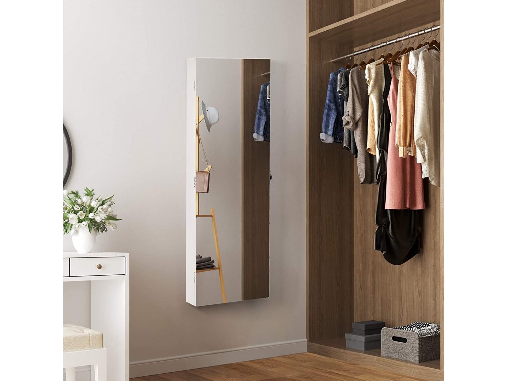 Závěsná skříňka na šperky se zrcadlem bílá