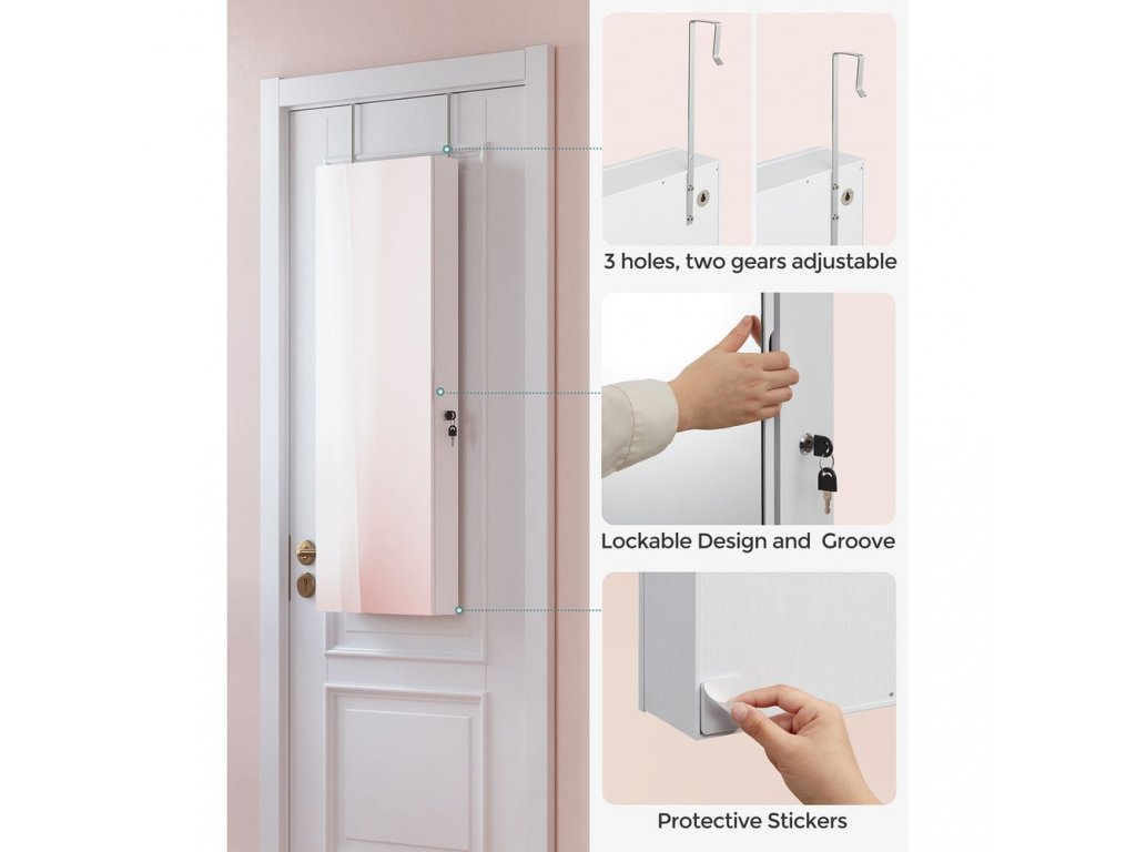 Díky prostornému a logickému uspořádání nemusíte dlouho hledat ty správné šperky, protože jsou přehledně seřazeny za dvířky zrcadlové skříňky.