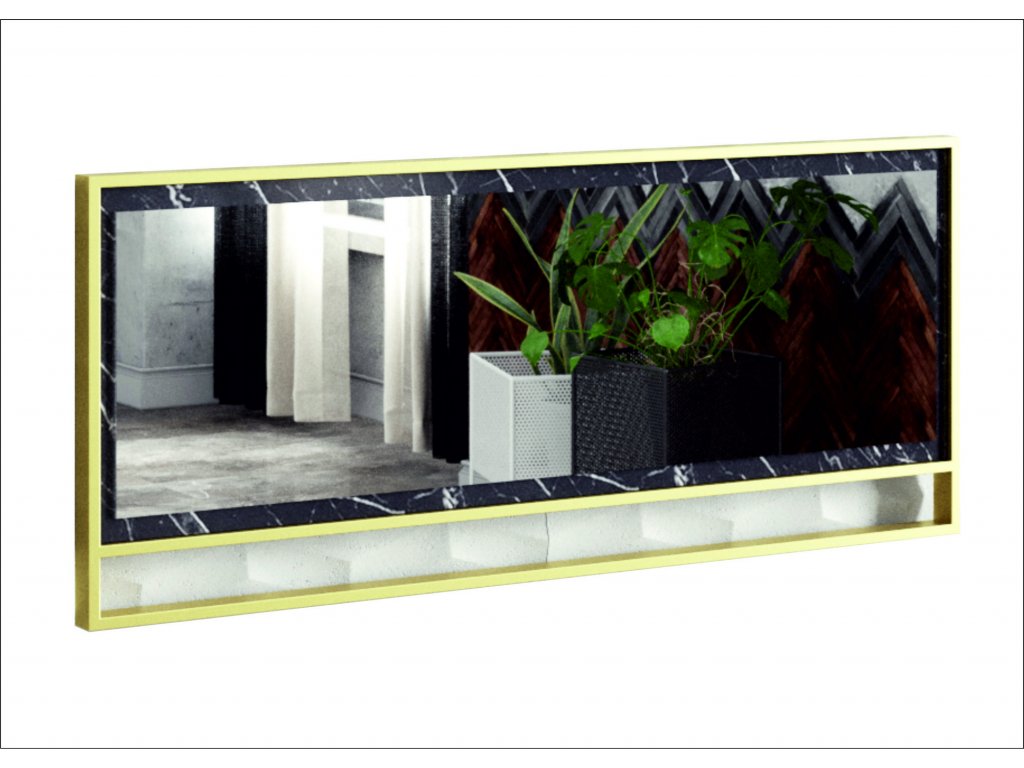 Elegantní zrcadlo POLKA na pevném podkladu s kovovým rámem ve zlato černém provedení.